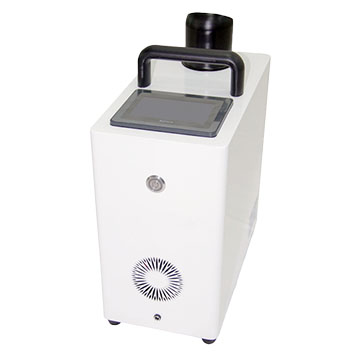 該設(shè)備采用了壓縮氣體噴霧技術(shù)。設(shè)備內(nèi)裝有液體計(jì)量泵能連續(xù)定量供給**液,并內(nèi)置了微型充氣泵。當(dāng)微量的液體低速進(jìn)入噴嘴后遇到高速載氣,被碰撞粉碎,并隨著**氣體噴灑致空中。粒徑小于5μm的過(guò)氧化氫小液滴在空氣中進(jìn)行布朗運(yùn)動(dòng),相互碰撞,均勻擴(kuò)散,從而達(dá)到對(duì)空氣物表進(jìn)行**的作用