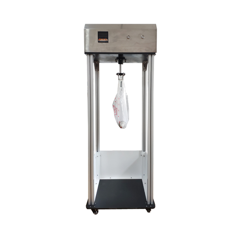 將相當(dāng)于 2 倍的標(biāo)稱內(nèi)裝物質(zhì)量的顆?;旌衔镅b滿四分之三袋,然后懸掛在疲勞試驗(yàn)機(jī)上進(jìn)行疲勞試驗(yàn),結(jié)束后觀察提袋處有無(wú)破損。
